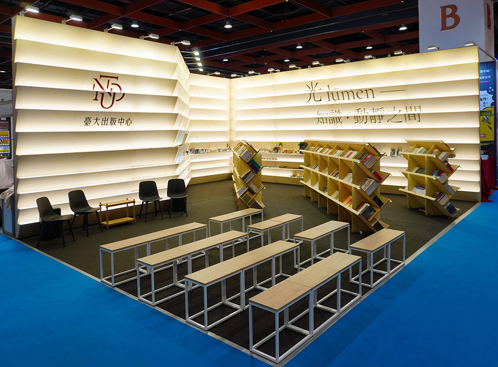 臺大出版中心以「光 lūmen─知識.動靜之間」為主題之展區。