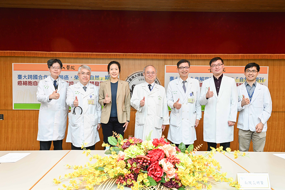 臺大跨國合作解密肺癌 新藥開發記者會大合照。