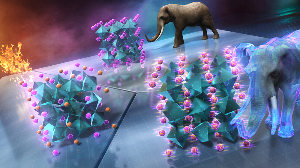 大多數晶體材料的性質與其內部結構息息相關—原子、離子或分子的規律排列組成晶體,這種有序性決定材料的電性、磁性及機械特性等等,而材料內部的電子或電荷也能形成規律排列,進而影響其導電或光學性質。鉍鎳氧BiNiO3是一種需利用高壓高溫 (HPHT) 環境製備的鈣鈦礦氧化物。在常溫常壓下,其結構中 Bi3+與 Bi5+ 離子會形成較少見的規律柱狀排列。當外加壓力至 3 GPa 時,這種有序排列開始「熔化」,電荷在鉍 (Bi) 與鎳 (Ni) 離子間發生轉移。而當壓力進一步提高至 4~5 GPa、溫度降至 200 K 以下時,原本的電荷規則結構徹底崩潰,進入無序的「電荷玻璃」狀態。這種狀態下,電子分佈變得隨機,就像某些材料在壓力作用下失去晶體結構一般。更有趣的是,當材料在高壓環境下升溫,它還會再度轉變為金屬態的高壓相,並伴隨著體積縮小(而非常見的熱脹冷縮)—這種現象被稱為負熱膨脹。這一連串特殊的變化與相轉變,展現壓力、溫度與材料電性之間的微妙關聯。