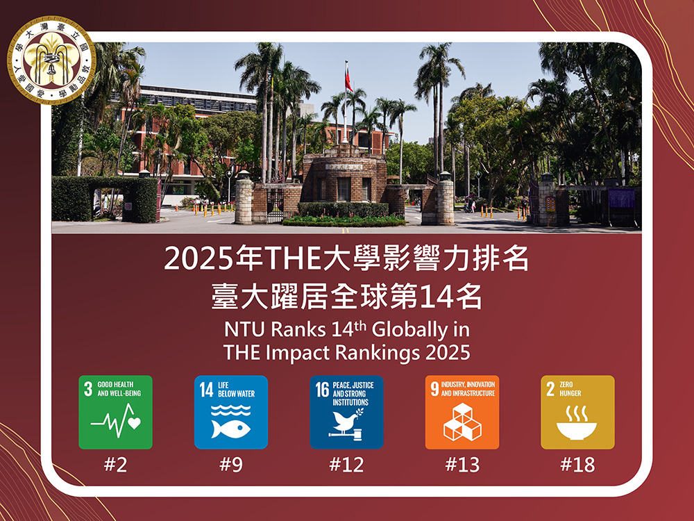 英國《泰晤士高等教育》(Times Higher Education, THE) 於2025年6月18日公布「2025年大學影響力排名」(THE Impact Rankings 2025),臺灣大學在全球2526所入榜大學中名列第14名,不僅為全臺第一,更創下臺大自參與以來最佳成績,彰顯在永續發展與社會責任領域的卓越表現。