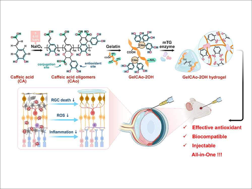本團隊開發具抗氧化與生物相容性的咖啡酸改質水凝膠 可用於視網膜內層修復並適合玻璃體內注射。