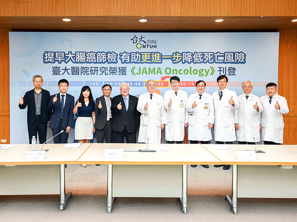 提早大腸癌篩檢 有助更進一步降低死亡風險 臺大醫院研究榮獲《JAMA Oncology》刊登記者會-大合照。
