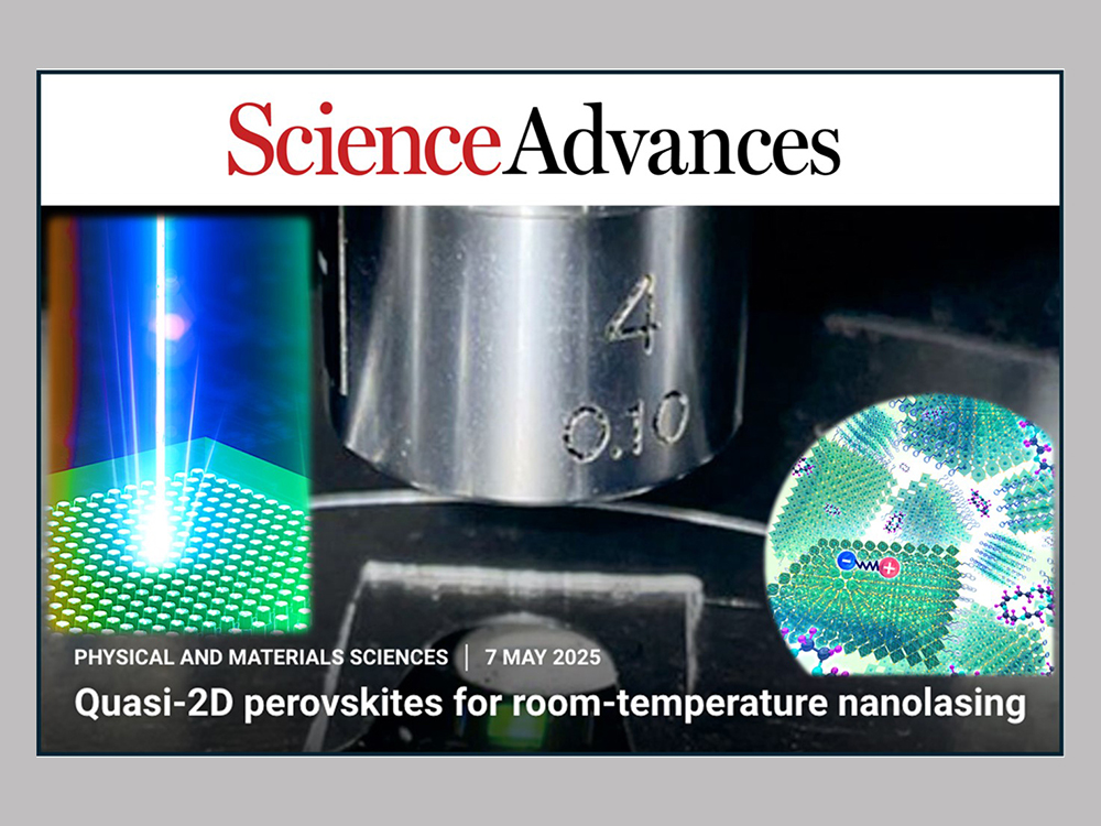 近期,臺灣大學化學工程學系教授闕居振與中研院應科中心副研究員呂宥蓉(亦為臺大物理系合聘教師)攜手合作,成功突破上述技術瓶頸。研究團隊首度將具高光學增益特性的準二維鈣鈦礦材料與具高品質因子 (high-Q) 的電漿子表面晶格共振結構結合,研製出可於室溫運作的奈米雷射元件。此設計不僅巧妙融合光子與電漿子的優勢,亦在奈米尺度下強化光與物質間的交互作用,使得雷射元件得以穩定產生單模態、波長可調的雷射輸出。該奈米雷射具備多項技術優勢:其體積極小、可實現高效能且低啟動功率雷射輸出,並可透過光學設計進行波長微調,展現高度整合與可程式化潛力。更重要的是,此元件材料與製程皆相對低成本,且具高度兼容於現有半導體製造技術,具備大面積量產的可行性。此成果不僅為奈米雷射技術建立新的設計方向,也為未來高密度光電整合提供關鍵解方。