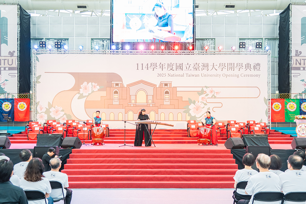 典禮由社團影片與現場表演揭開序幕,吸引新生與家長目光,展現臺大熱情及多元的社團文化。演出自打擊樂與古箏震撼開場,隨後由交響樂團與管樂團帶來精湛演奏,最後以現代舞社與火舞社的熱力演出將氣氛推向高潮,贏得滿堂喝采。影片與演出緊密呼應,傳遞大學生活不僅限於課堂學習,更能透過社團拓展人際、豐富人生。