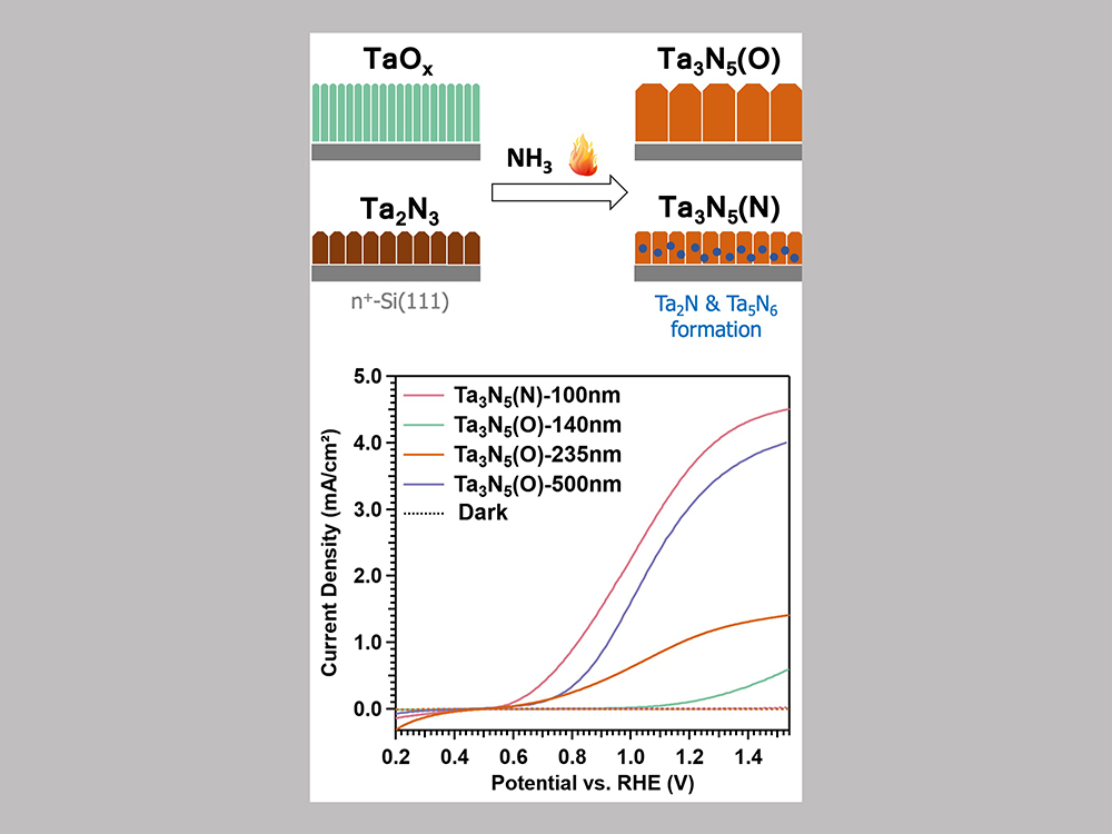 臺灣大學化學系助理教授姜昌明的研究團隊開發出創新薄膜製備技術,以亞穩態的氮化鉭前驅物Ta₂N₃為起點,在矽基材上成功合成出高效率、超薄型的Ta₃N₅光陽極。這種策略在基材界面生成微量具高導電性的次氮化物(subnitrides),大幅提升電荷傳遞效率,使其能達到與傳統厚膜相當甚至更優的光電流輸出,顯著降低鉭的使用量。