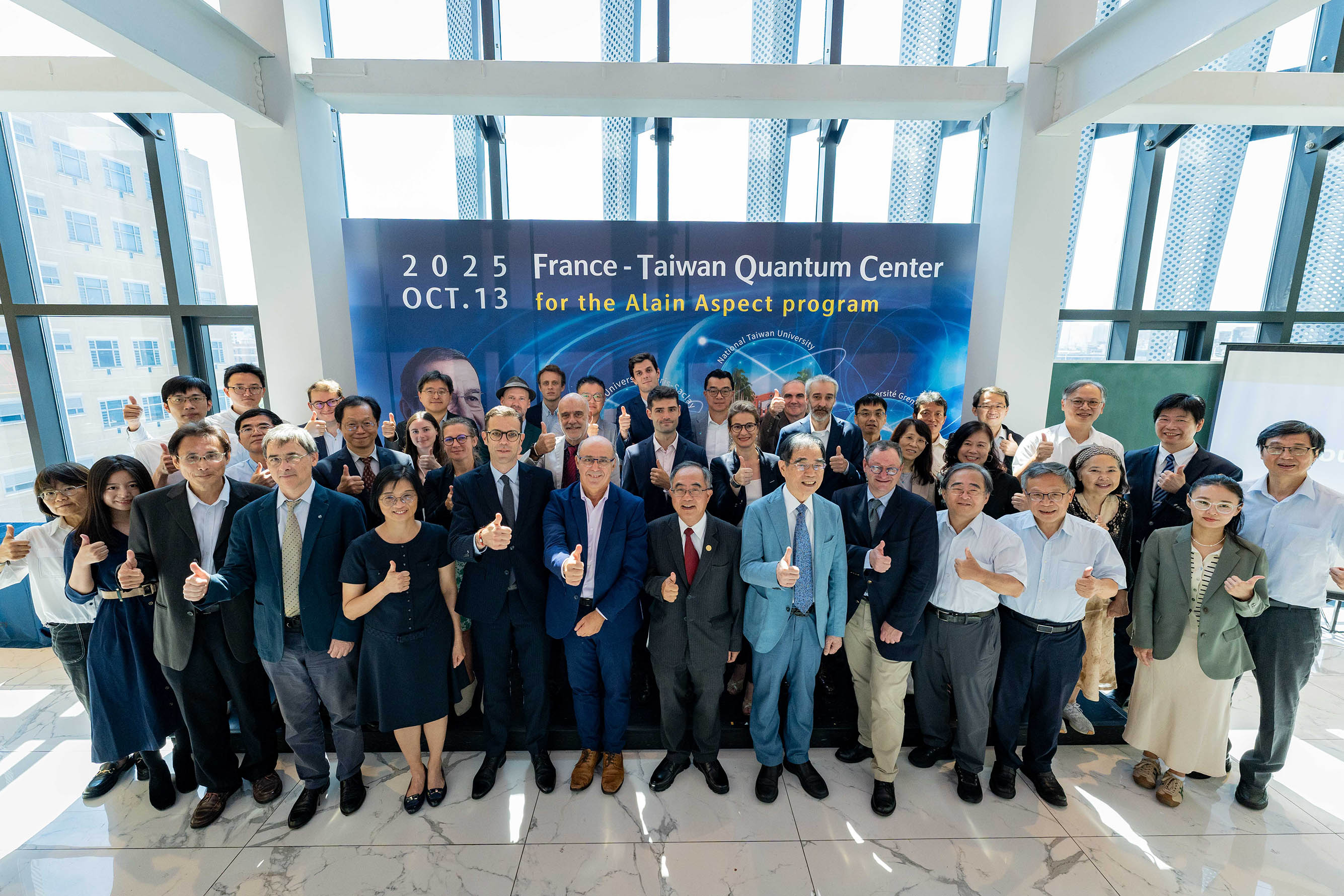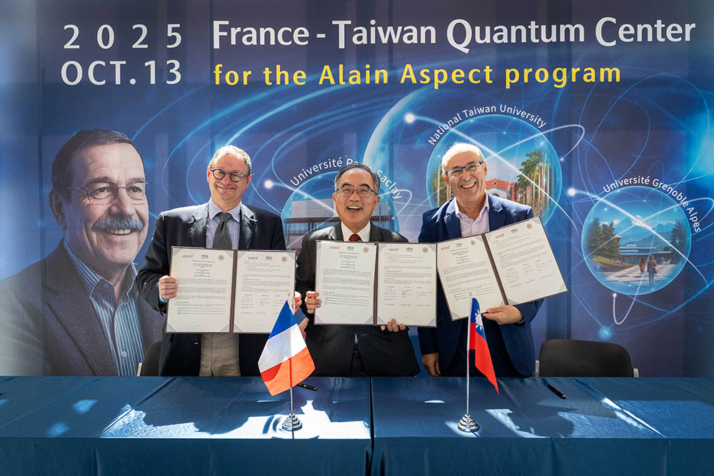 臺灣大學於2025年10月13日與法國巴黎–薩克雷大學 (Université Paris-Saclay)、格勒諾布爾–阿爾卑斯大學 (Université Grenoble Alpes)於臺大舉行簽約儀式,宣布共同啟動以2022年諾貝爾物理學獎得主阿蘭.阿斯佩 (Alain Aspect) 為名的「法臺量子中心 - 阿蘭.阿斯佩計畫」(France–Taiwan Quantum Center for the Alain Aspect Program)藉以強化臺法學術合作、推動量子科技研究,並培育兼具國際視野與實作能力的年輕與高階量子領域研究人才。除了3校代表外,法方也有法國國家科學研究中心(CNRS)和法國在台協會(BFT)代表出席見證簽約儀式。