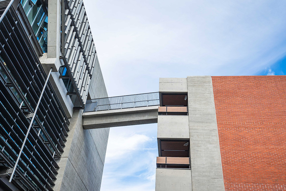 人文館設計融合周邊館舍及城市環境,串聯文化、校園與城市之間的對話。施工過程中,採用高性能混凝土 (HPC) 包覆鋼構,提升耐火及防蝕性能;結構剪力牆則使建築耐震力提升50%。