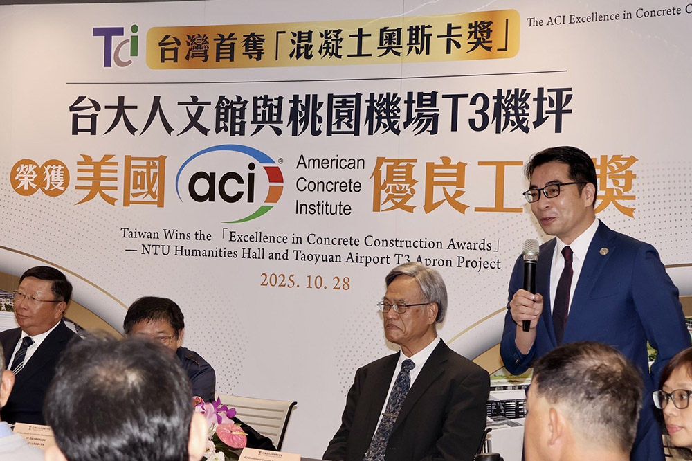 臺大總務長廖文正出席「台灣首奪混凝土奧斯卡獎」記者會,見證台灣混凝土技術躍登國際舞台的歷史時刻。